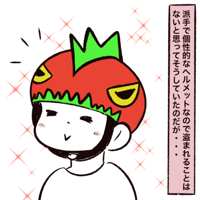 派手で個性的なヘルメットなので盗まれることはないと思ってこのヘルメットを選んだまるさんでしたが・・・