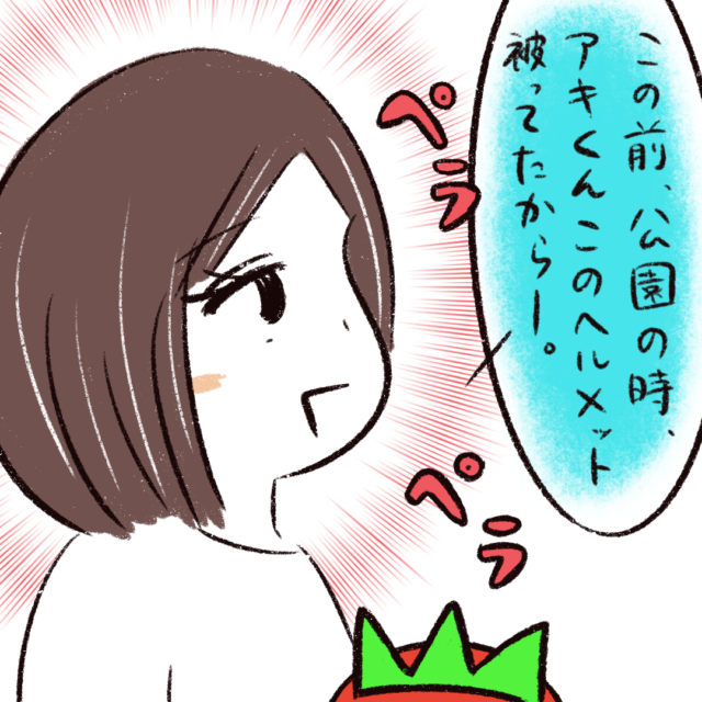 「この前、公園の時アキくんこのヘルメット被ってたからー」
