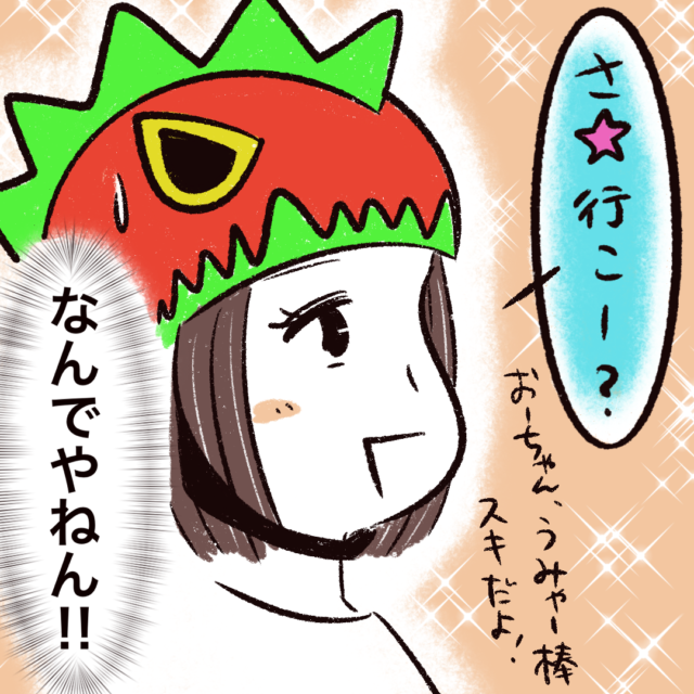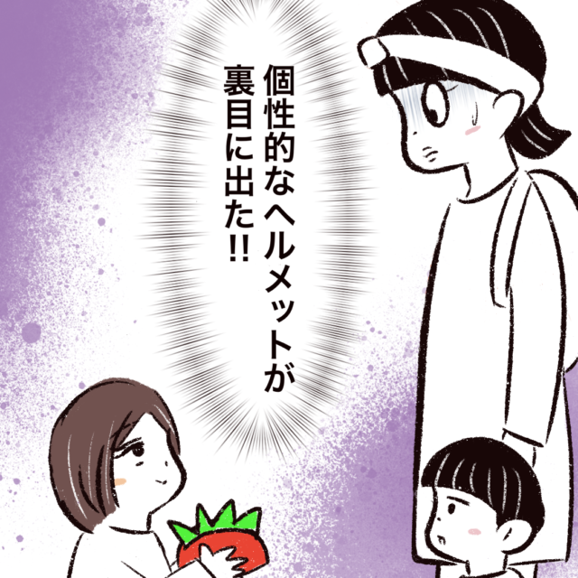 おーちゃんは当然のようにアキくんのヘルメットを被り、あれほど断っているのにまだ一緒にスーパーに行こうとしています。
