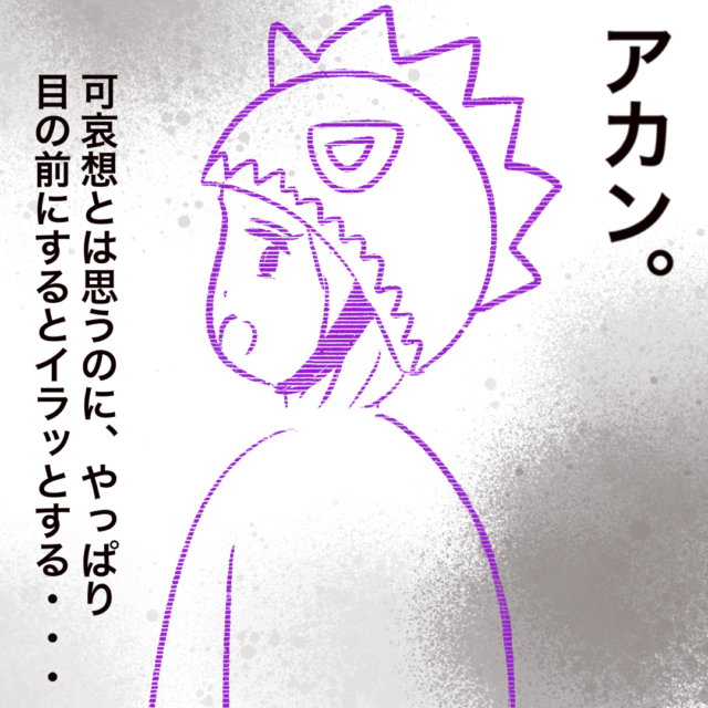 (アカン。可哀想とは思うのに、やっぱり目の前にするとイラっとする・・・)