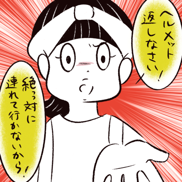 「ヘルメット返しなさい!絶っっ対に連れて行かないから!」