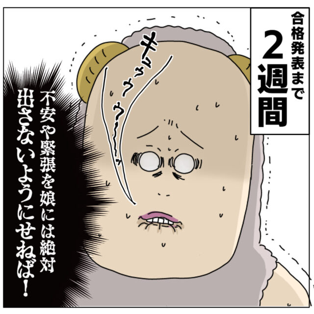 一番不安なのはリコちゃん本人だと分かっていますが、親も胃が痛くなりそうですね。合格発表までの2週間がとてつもなく長く感じそうです。