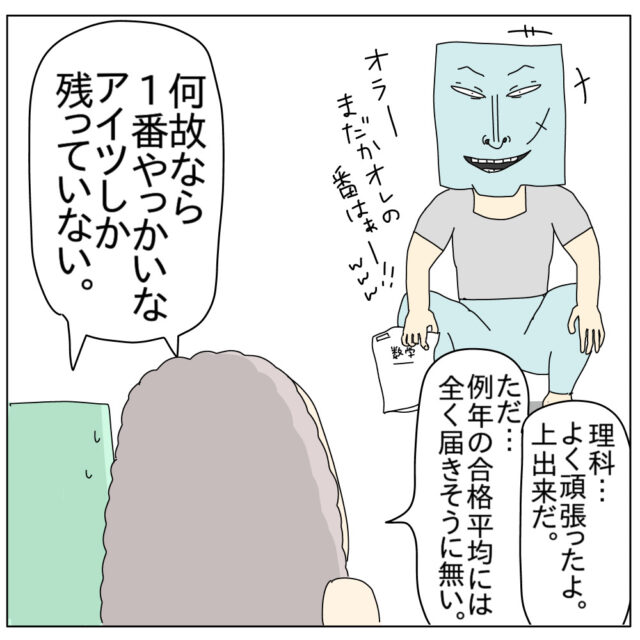 望みは絶たれた。自己採点を終え第一志望は諦めモード。勉強苦手な天然娘の高校受験[16]|チャーの育児漫画
