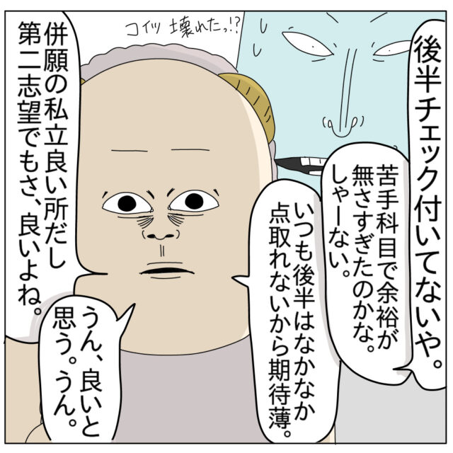 リコちゃん、苦手な理科を頑張りましたね!数学は全部の自己採点ができませんでしたが・・やはり望みは薄いのでしょうか。