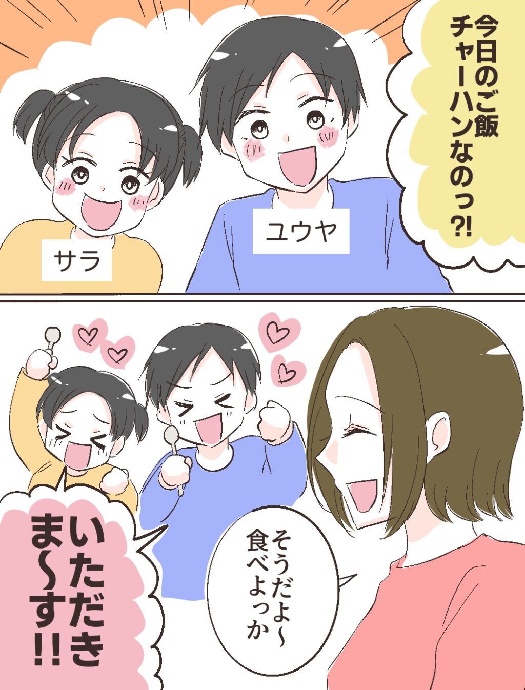 フトシがほとんど食べてしまうのを避けるために大量に作ったチャーハンでしたが、細かく刻んだ野菜に怒り出して食べないと言われてしまいましたが、子どもたちは山盛りチャーハンに大喜びでホッとしました。