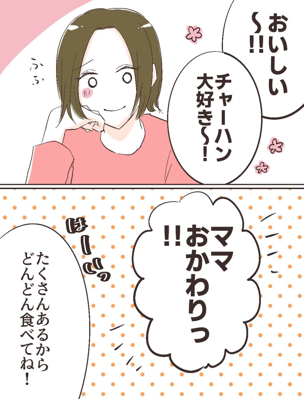 大量のチャーハンを作り、食い尽くし系のフトシさんでもこれなら大丈夫と思っていたヒカリさんでしたが、小さく刻んだ野菜が入っていることが理由で怒り出したフトシさん。子どもたちが美味しそうにおかわりをしてチャーハンを食べているのに「外で食べてくる」とイライラしたまま出かけてしまいました。フトシさんの好物ばかりを作ると野菜料理がなくなってしまいます。家族の健康や子どもたちの偏食を心配するヒカリさんは野菜料理でも、肉の量を増やせばいいのかなと、何とか家族一緒に食事をする方法を考えるのもなんだか切ないですよね。