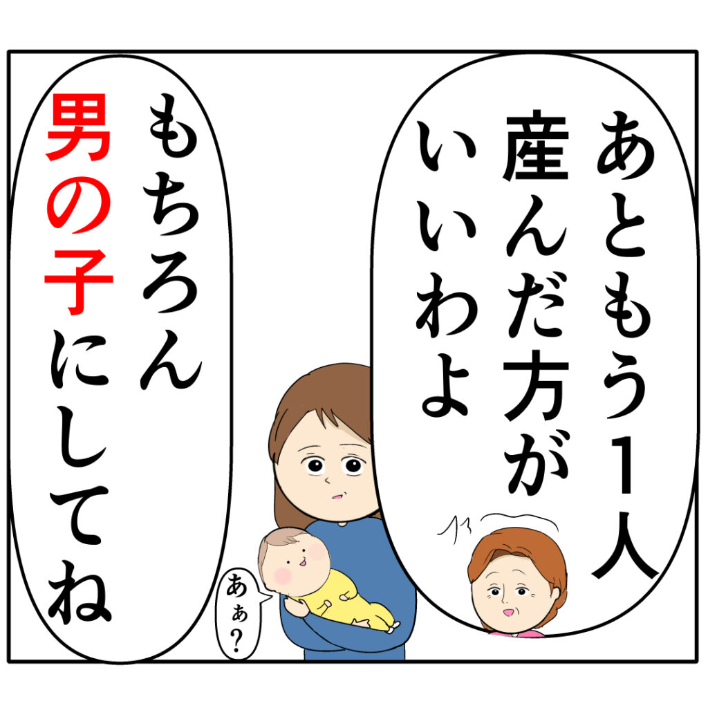 すると、「あともう1人産んだ方がいいわよ。もちろん男の子にしてね」と言い出す義母。