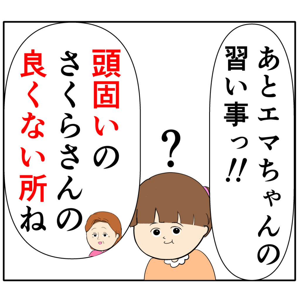 さらに、「あとエマちゃんの習い事っ!!頭カタイのさくらさんの良くない所ね」義母の言葉を聞いてもエマちゃんは「?」