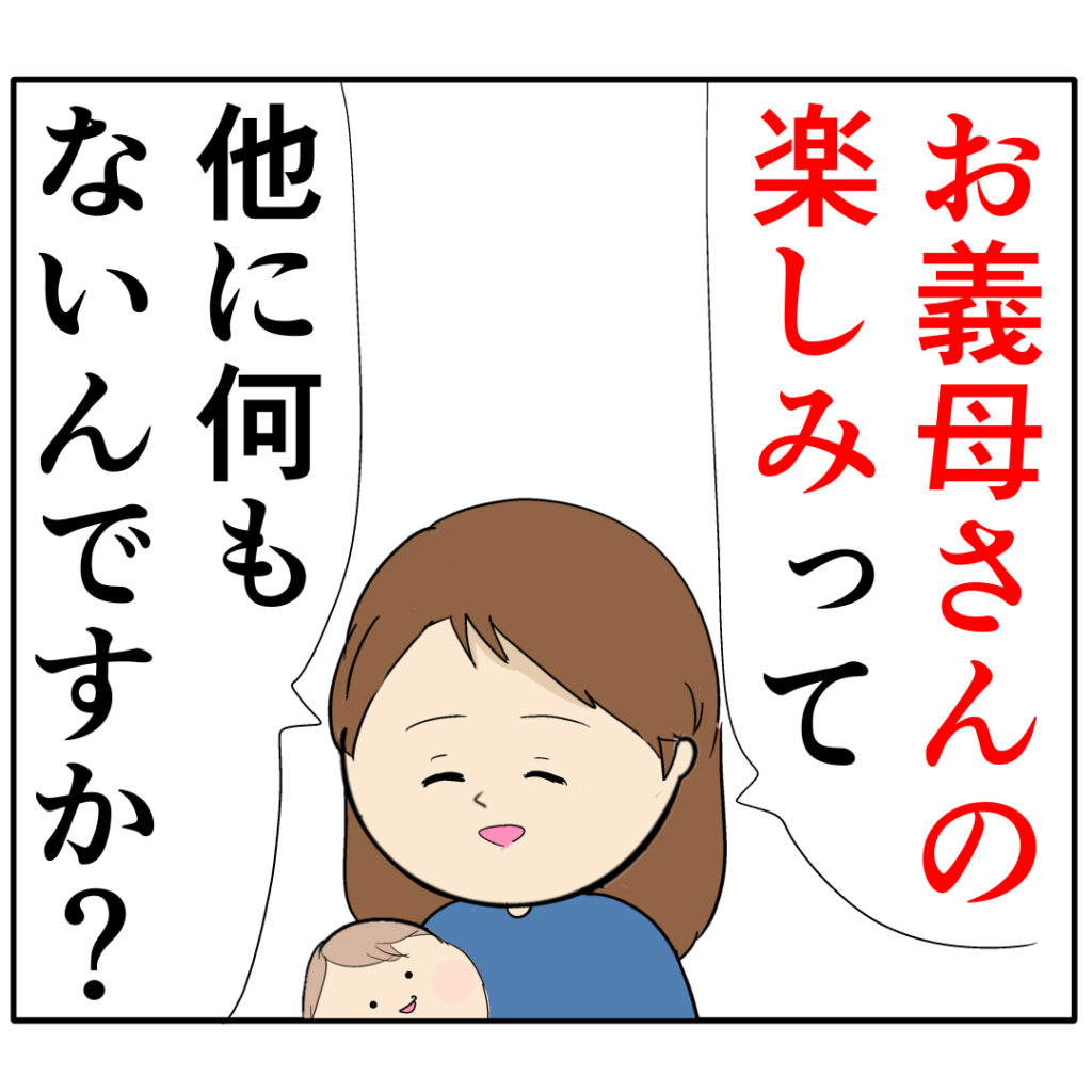 「お義母さんの楽しみって他に何もないんですか?」にっこり笑顔で義母に皮肉をぶつけたのでした。