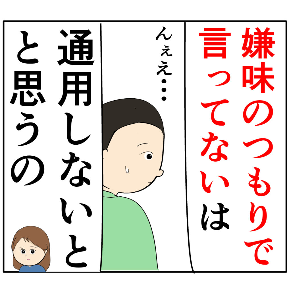 「『嫌味のつもりで言ってない』は、通用しないと思うの」と次郎さんに詰め寄りました。