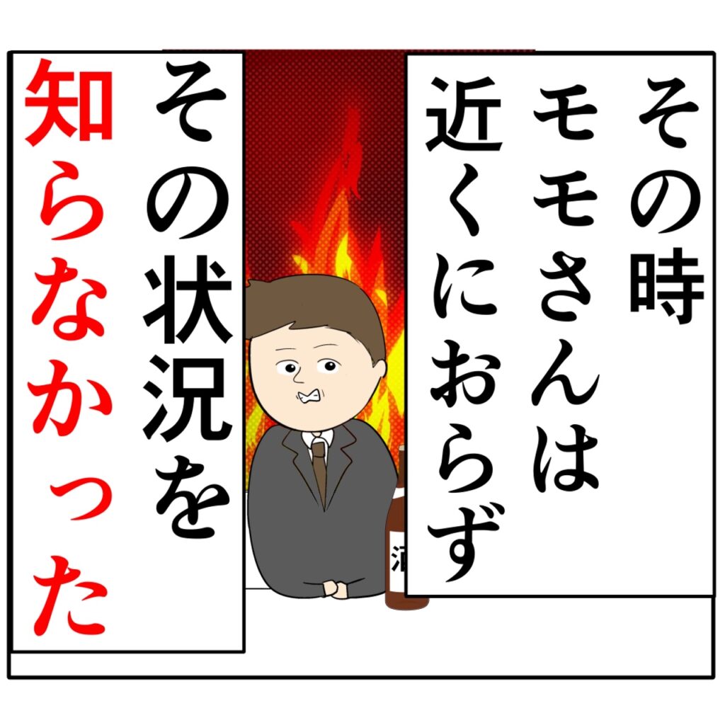 モモさんの祖父のお葬式のときに、モモさんの遠い親戚から自分の仕事を馬鹿にするようなことを言われた、とモモさんに怒っている理由をみんなに説明した三郎さん。しかし、その時モモさんは近くにはおらず、その状況を全く知りませんでした。