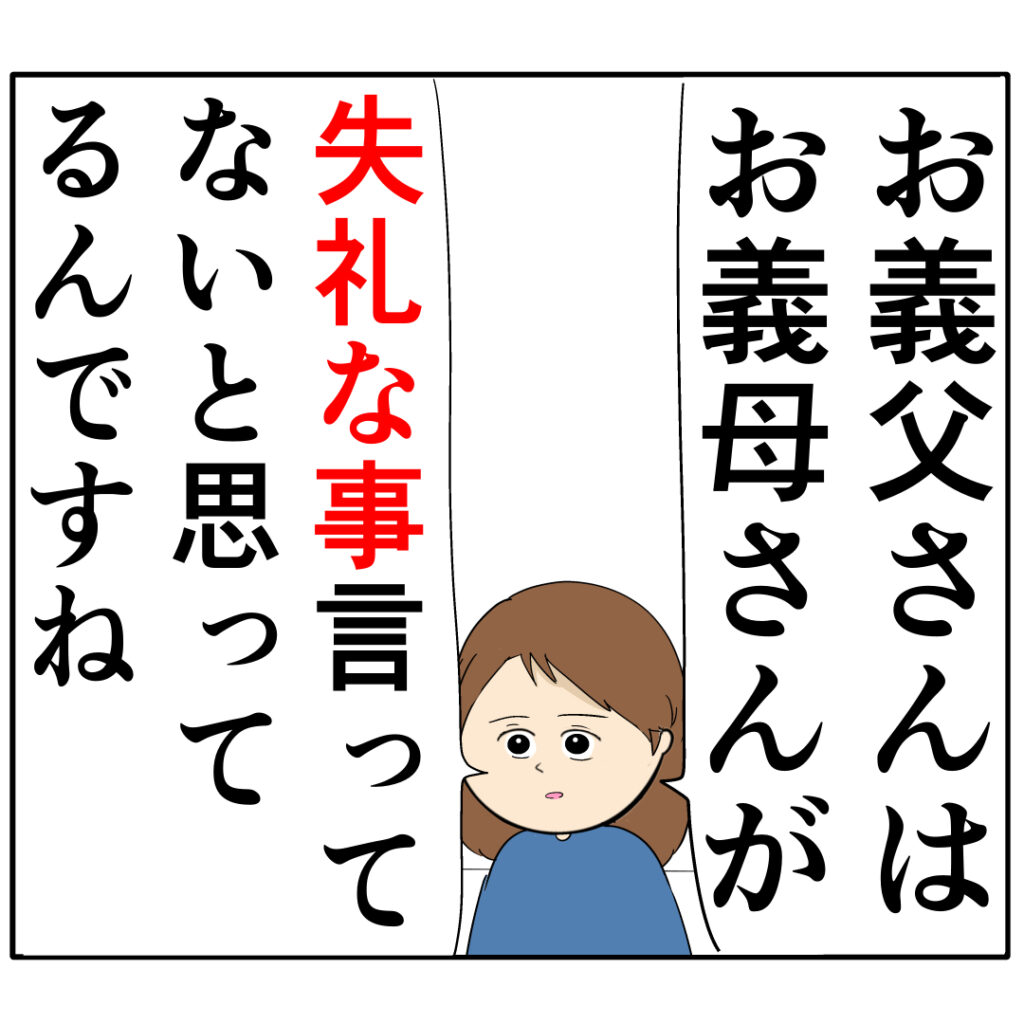 自分が失礼な発言をしていると思っていない義母と、義母の発言に失礼な点はないと思っている義父。そんな二人にさくらさんは「前の事を蒸し返したくはありませんが」と切り出しました。