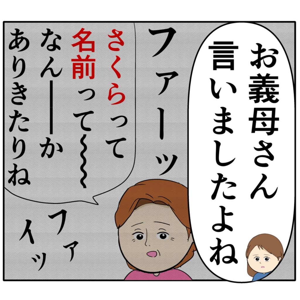 「お義母さん言いましたよね」と、義母が「さくらって名前って~、なーんかありきたりね」と言ったことを話しました。