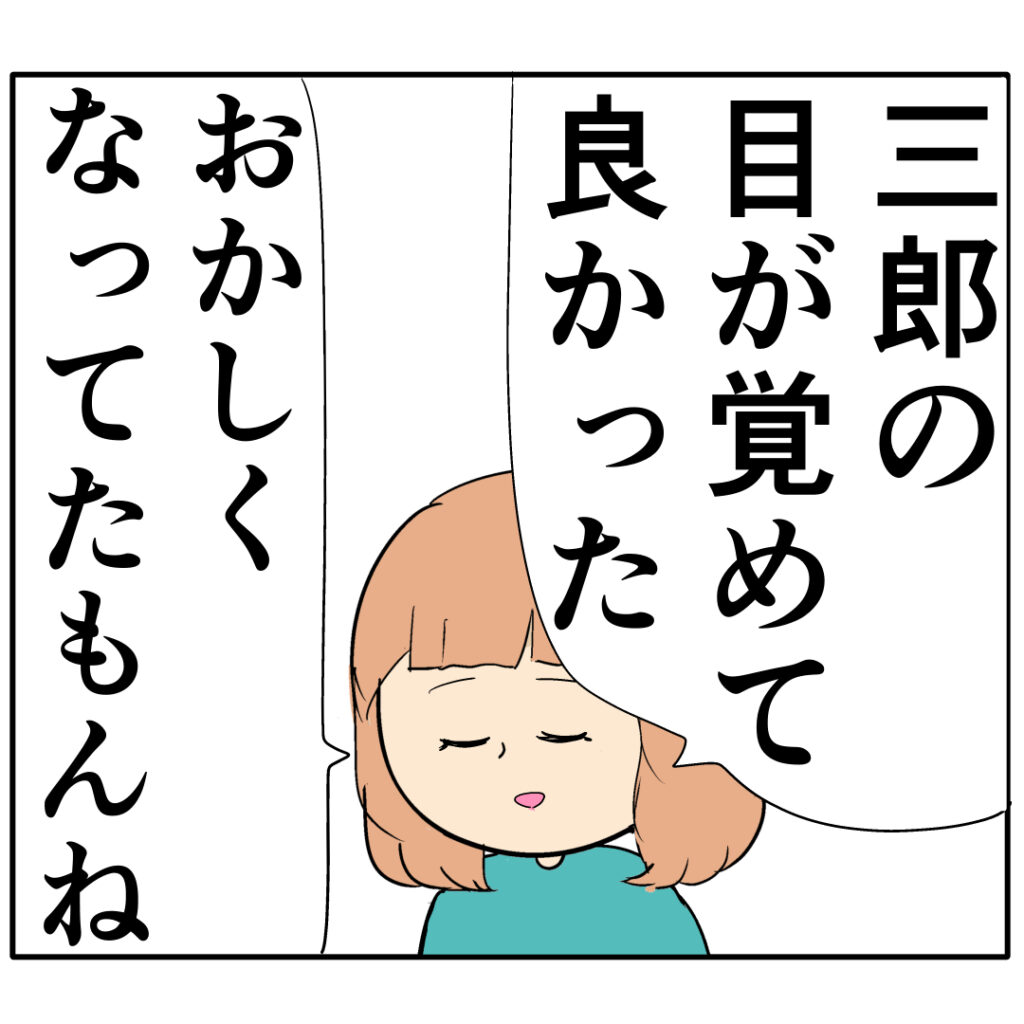 ホッとしたような笑みを浮かべて、「三郎の目が覚めて良かった。おかしくなってたもんね。」と言いました。