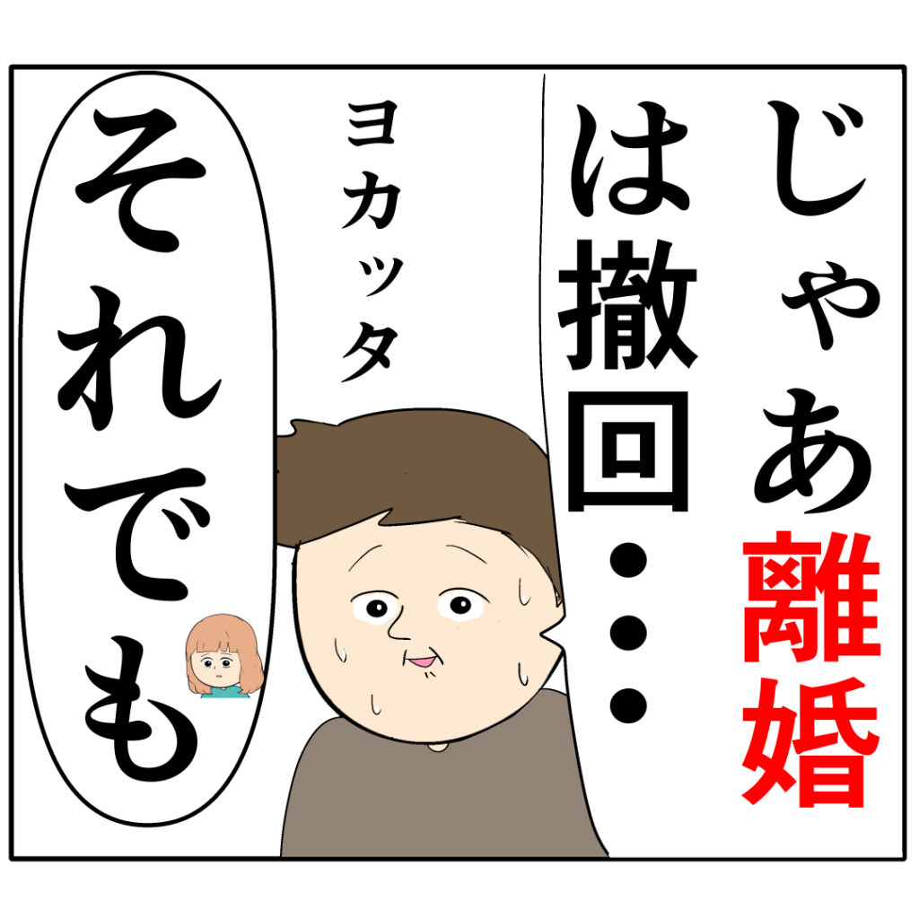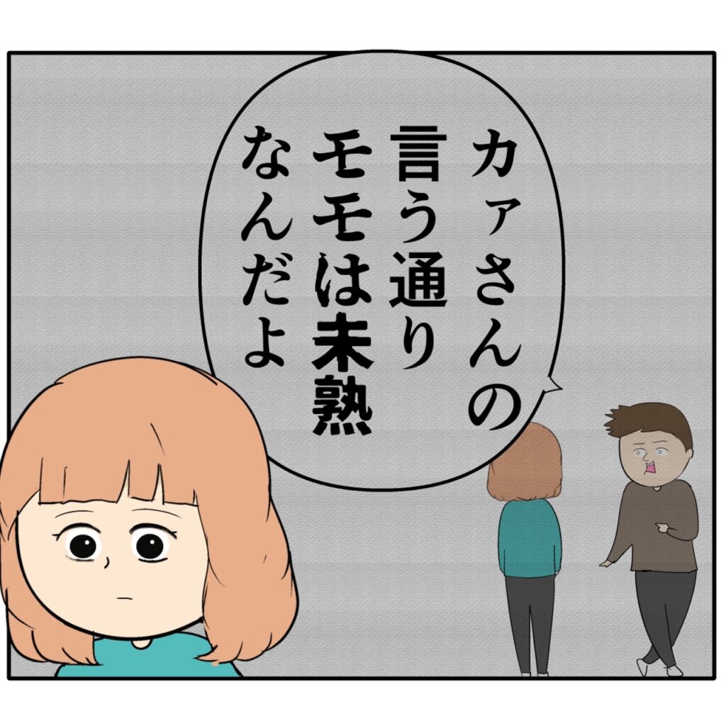 離婚したいというモモさんを必死に引き留めようとする三郎さん。モモさんが「人だから間違う事もあると思う」と言うと、三郎さんは「じゃあ離婚は撤回・・」とホッとした表情を浮かべました。しかし、これまで義母の言葉だけを信じて自分の言葉を信じてくれなかった三郎さんの言動を思い返したモモさんは「もう遅いです。離婚しましょう」と改めてきっぱりと告げました。