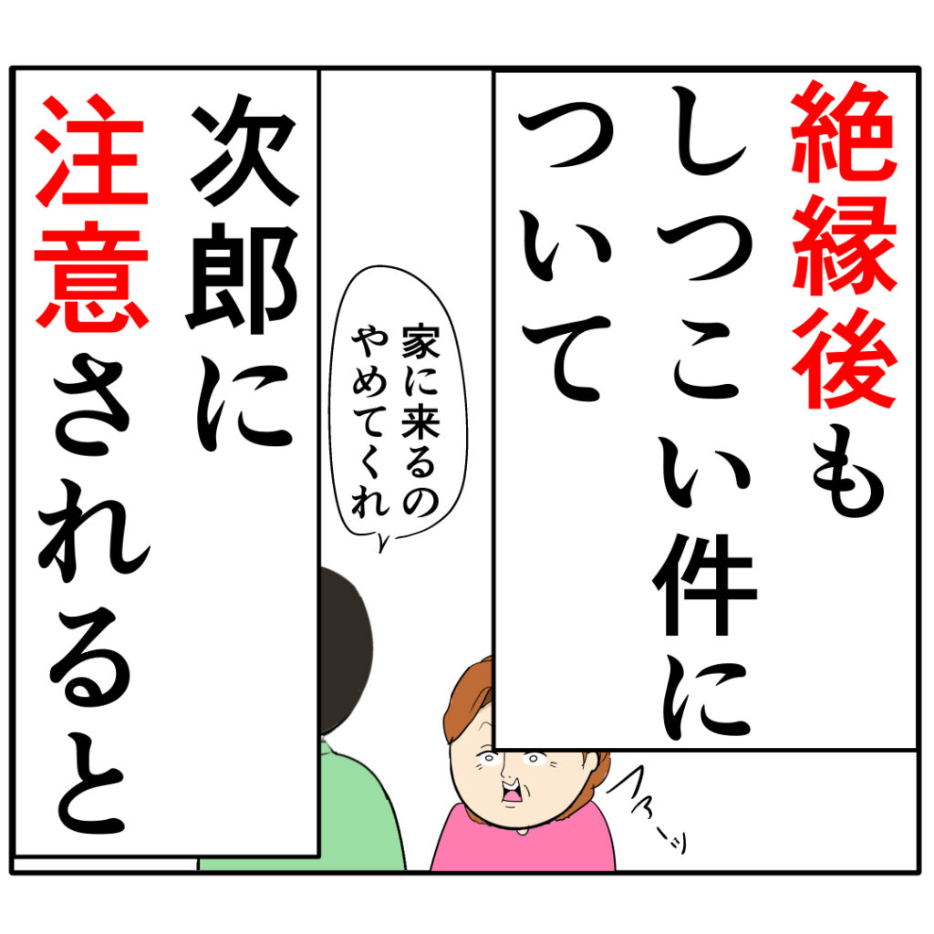 その後、絶縁したにもかかわらず、しつこくする件について、次郎さんに「家に来るのやめてくれ」と注意されると、