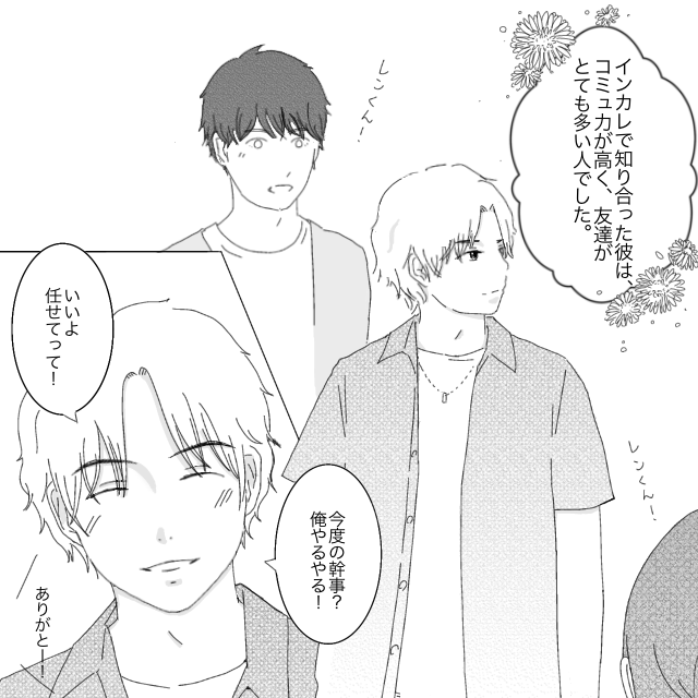 インカレサークルで知り合った彼は、コミュ力が高くていつもたくさんの友達に囲まれていました。初めて会ったときも、「今度の幹事?俺やるやる!いいよ、任せてって!」と率先して飲み会の幹事を引き受けていました。