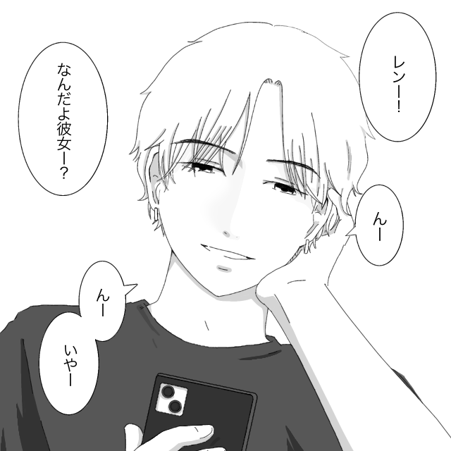 スマホを手にずっとメッセージのやり取りをしているレンさんは、友達から「レンー!なんだよ彼女ー?」と聞かれると、笑みを浮かべながら「んー、いやー」と曖昧な返事。