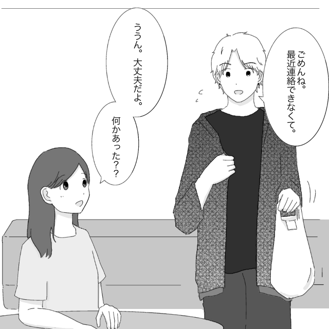 社会人になり、大学生のレンとはすれ違いばかり。そんなある日、バスケサークルで知り合ったアツシくんから、「久しぶり、レン大学やめたよ」と連絡が。さらに数週間後、やっとレンか連絡が!「今からそっちに行っていい?」と言われ、「待ってる、私も会いたい!」と嬉しくなりました。