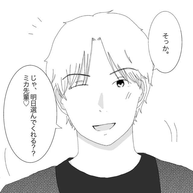 「そっか。じゃ、明日選んでくれる??ミカ先輩」とウインクしながらレンにお願いされて、