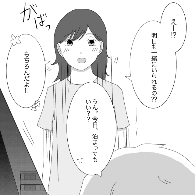 「えー!?明日も一緒にいられるの??」と驚いて言うと、「うん。今日、泊まってもいい??」とニッコリ笑顔で言うレンに、「もちろんだよ!!」と慌てて立ち上がりながらそう答えたのでした。