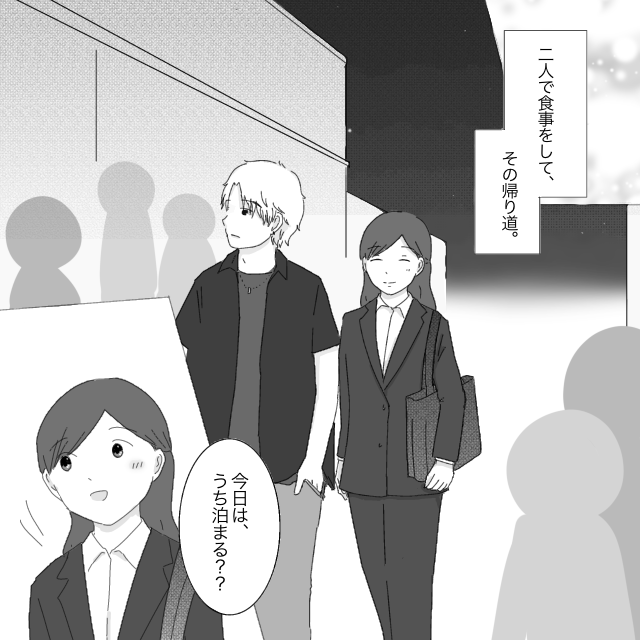 二人で食事をした帰り道。レンと過ごす時間を楽しみにしていた私は「今日はうち泊まる??」と聞きました。久しぶりに会えたしきっと泊まるだろうと思っていたのですが・・、