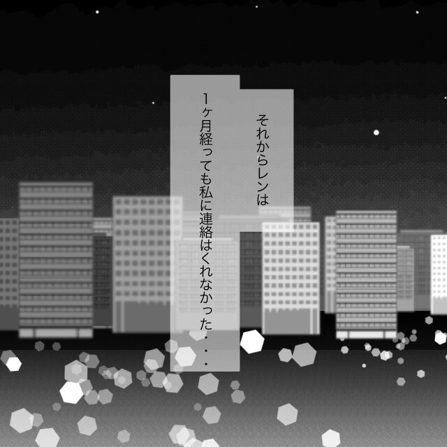 それからレンは1ヶ月経っても私に連絡はくれませんでした。「すぐ会える」「また連絡する」って言ってたのに。次はいつ会えるんだろう・・。