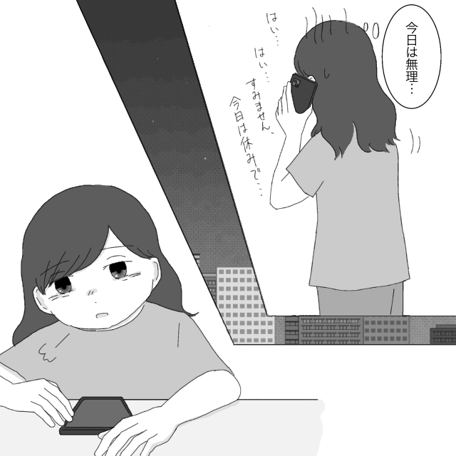 さすがに今日は無理・・と思い、「はい・・はい・・すみません。今日は休みで・・」と会社に電話して休むことにしました。
