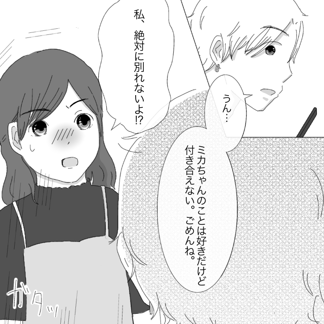 お互い好き同士だったものの、レンさんの過去の恋愛のトラウマが障害となり、恋人になれなかった2人。レンさんは、ミカさんに「付き合えない」と言ってからの方が優しくなりました。映画に行ったり、ランチをしたり、たまにはお泊りもあったり・・・誰がどう見ても、レンさんの彼女のような存在のミカさん。曖昧な関係に納得がいかないミカさんは、レンさんに「私は彼女じゃないの?」と問いかけます。しかし、レンさんの気持ちはあの時から変わりません。「ごめんね」と申し訳なさそうに謝る姿に、そんな悲しい顔をされたら私は何も言えなくなるじゃない・・・と言いたい気持ちをぐっと堪え、ミカさんは「ううん」と首を振りました。曖昧な関係でも、自分を一番大切にしてくれるなら彼女になれなくても平気。ミカさんはそう言い聞かせながら、レンさんと次の約束を取り付けます。