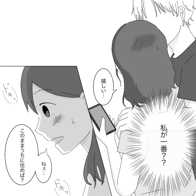 今まで付き合った彼女の誰よりも好きと言ってもらえたことに、私は舞い上がりました。嬉しさのあまりドキドキが止まりません。一番好きなら一緒に住んでくれるかもしれない・・・そう思った私は「ねぇ、このままうちに住めば?」とレンに問いかけました。
