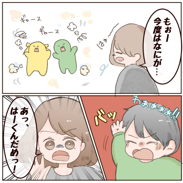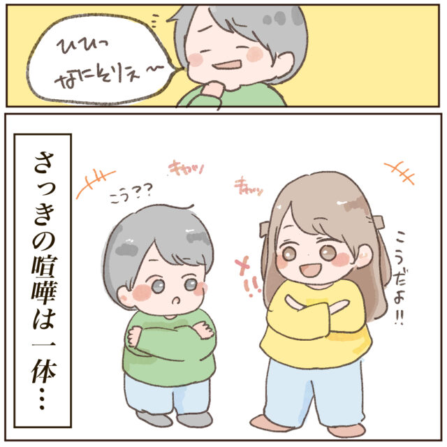 長女みーちゃん、長男はーくん、1歳7ヶ月差の年子姉弟のママである和栗ぐりさんから、きょうだい喧嘩中に飛び出した新技のお話が届きました。