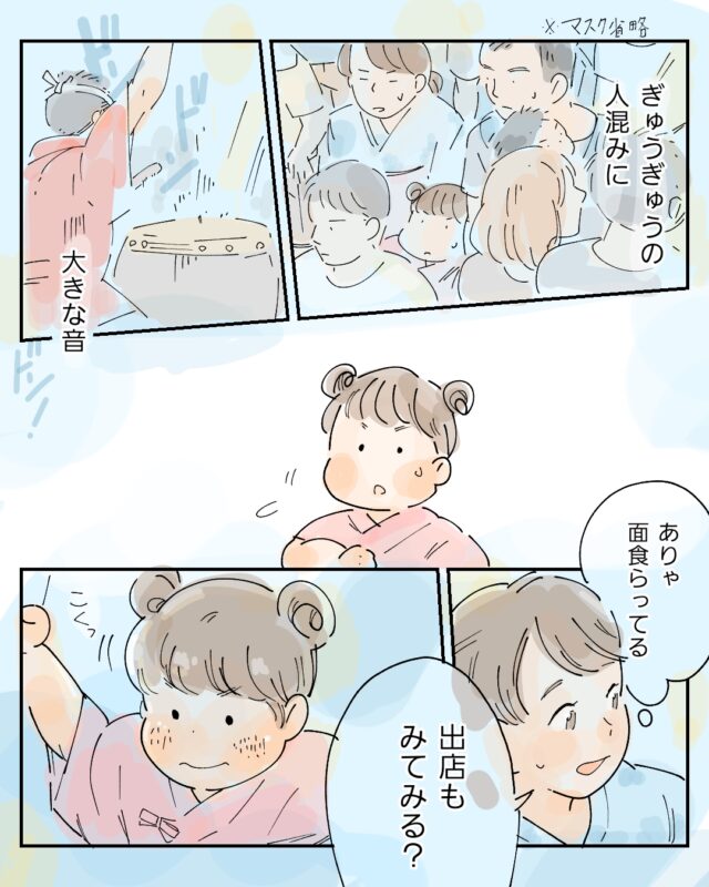 3歳の女の子くうちゃんと0歳の男の子へうくんのママであるマキノ(@warabeams)さん。今回は、夏祭りの思い出のお話です。くうちゃんとへうくんにとって初めての夏祭りだそうで・・・