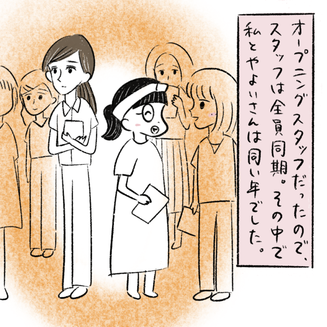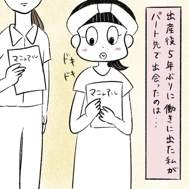 アキくんを出産後、数年ぶりにパートで働き始めたまるさん。オープニングスタッフでスタッフ全員が同期という状況の中、最初の研修が終わったところである女性に声をかけられ・・・?