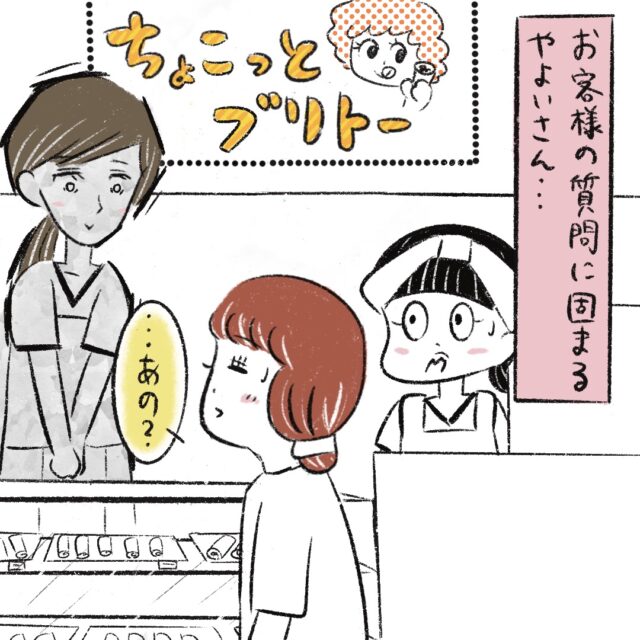 ブリトーのお店で同じオープニングスタッフとして働くまるさんと同僚・細田やよいさん。社員の吉岡さんに自分が褒められないことにショックを受けるやよいさんに「細田さん・・」とまるさんが声をかけようとすると、突然「やよいって呼んで?」と・・・。まるさんに「やよいさん」と呼んでもらえて上機嫌になったやよいさんでしたが、接客中にお客さんから質問されると固まってしまい・・・。