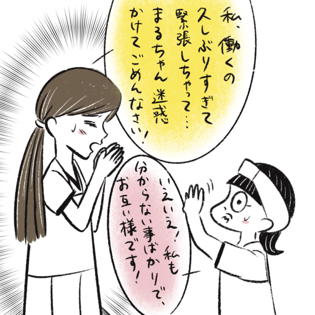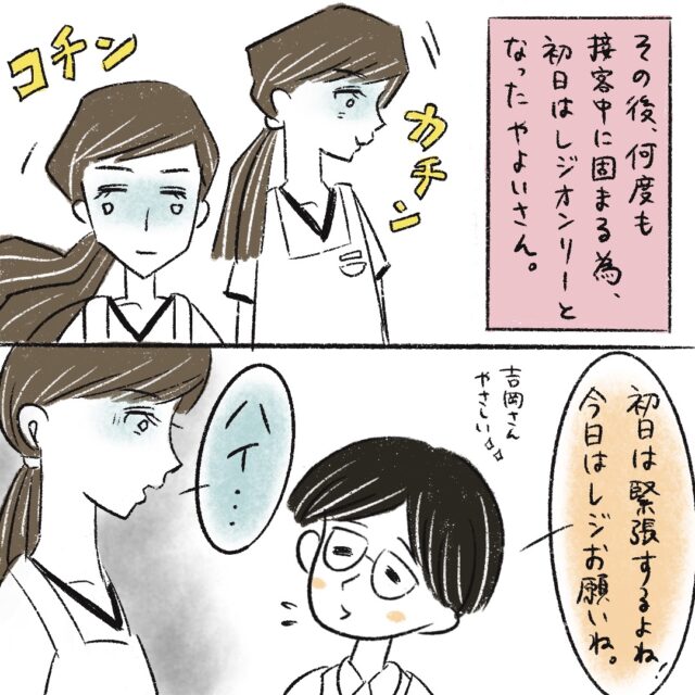 ブリトーのお店で一緒に働くまるさんと同僚・細田やよいさん。お客様から質問された途端に固まってしまったやよいさんに代わって接客をしたまるさん。お客様との会話も弾み一安心していたのですが、背後には悔しそうにまるさんを見つめるやよいさんの姿がありました・・・。