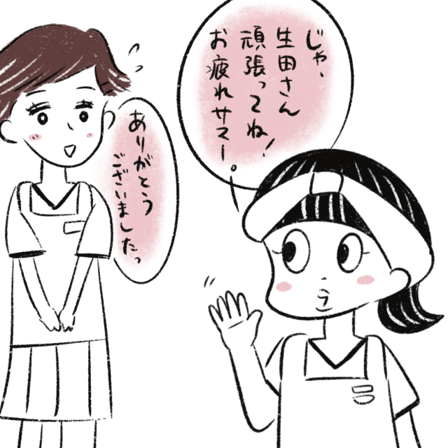 ブリトーのお店で働き始めたまるさんは、同僚やよいさんの対応に頭を悩ませていました。みんなに優しくされる高校生の新人バイト生田さんをやっかむやよいさんを見かねた社員の吉岡さんがやよいさんにキッチンの仕事を振ってくれました。まるさんの退勤時間と生田さんの休憩時間が重なり一緒にお店を出ることになった二人。「ごはん食べてきまぁす」と休憩の挨拶をする生田さんの可愛さにみんながキュンとなっていると、その光景を面白くなさそうに見ているやよいさんの姿が・・・。