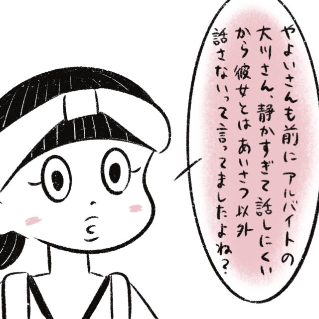 ブリトーのお店で働き始めたまるさんは、同僚やよいさんからなぜか依存や嫉妬をされ対応に頭を悩ませていました。まるさんとキッチン担当の森さんが冗談を言い合いながら仕事の話していると「なんで冗談が言い合えるの?」「私が頑張って話題を振っても会話が続かない!」という理由で泣き出したやよいさん。まるさんは、知らんがなと思いながらもやよいさんの話しをさらに聞いていると、天気の話を振っても会話を広げず完結させる森さんは自分を嫌っていると言い出し・・・やよいさんにはストレートに言わないと伝わらないと思ったまるさんは、「森さんはやよいさんのことを『何とも思ってない』と思う」とズバッと言いました。