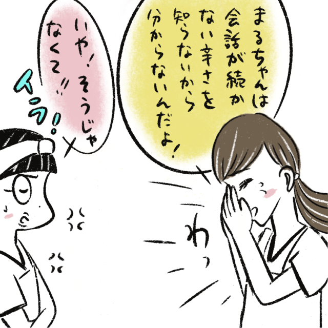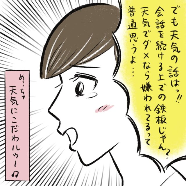あれ?私、まるさんの話にめちゃくちゃ納得したんですが・・・なぜやよいさんには全く伝わっていないのでしょうか(汗)天気の話って確かに話題がないときの鉄板かもしれませんが、それで会話が続かないからといって嫌われてると考えるのはちょっと極端なような・・・。