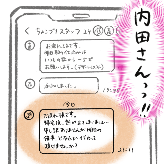 しかし・・・しかーし!アルバイトの内田さんがまさかの体調不良。