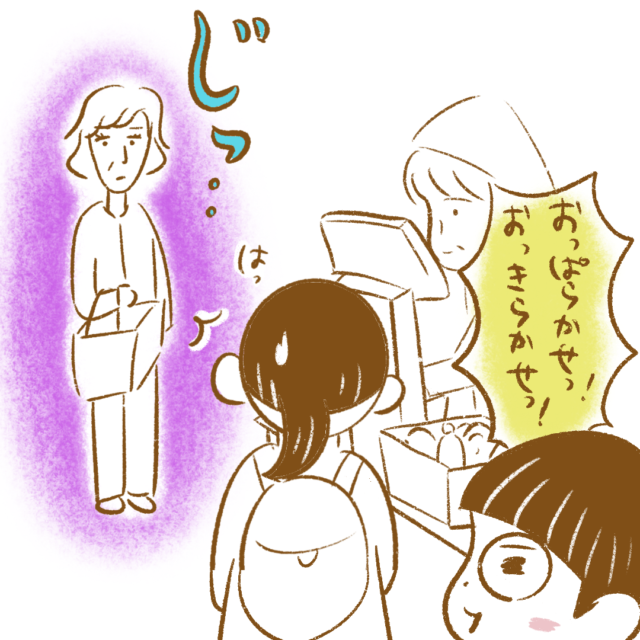 スーパーのレジでお会計をするまるさんの横でノリノリで歌うアキくん。まるさんは後ろに並ぶお客さんからの強い視線を感じ「ヤバイ!」と思ったのですが・・・。