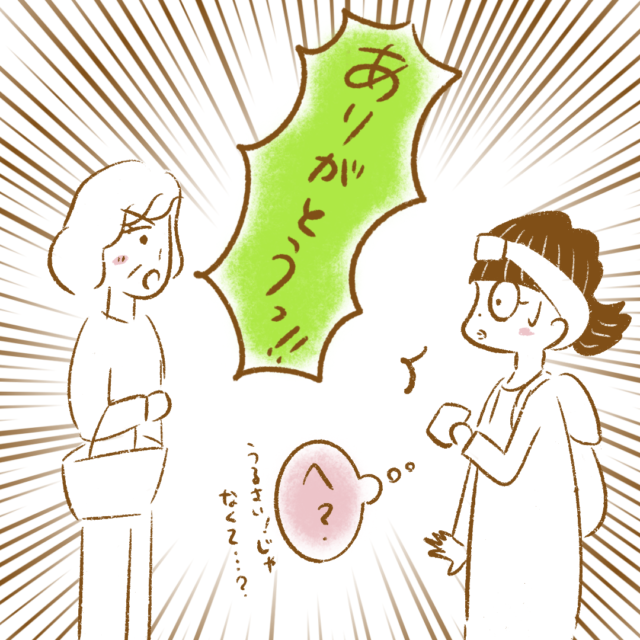 「あ、ヤバい!うるさいって思われてる!」と焦った瞬間、そのお客さんから出た言葉は「ありがとう!」