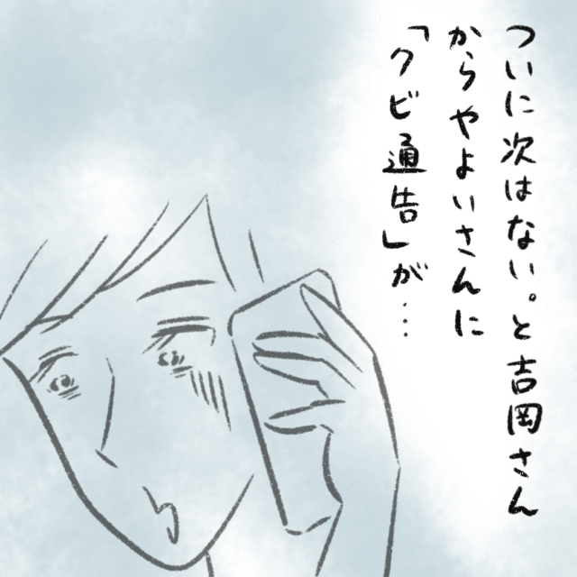 まるさんが見張る中、おつりを多く渡してしまった自分のミスを社員さんへ電話報告するやよいさんでしたが、泣きながら「自分は悪くない」「お客さんに取られた」と主張します。さらにはマイナス分の千円を自分が負担するのか確認する始末。社員の吉岡さんから、とうとう「次に何かあったら即刻辞めてもらう」と宣告されるのでした。