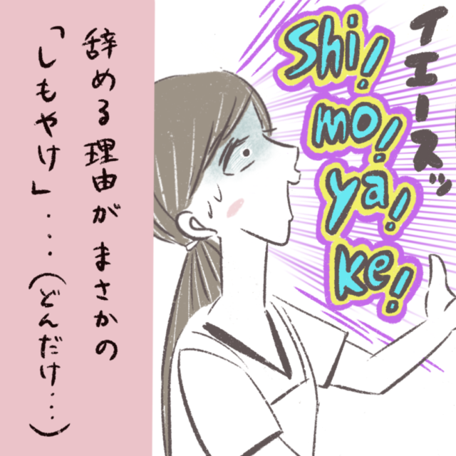 とうとうやよいさん退職の日、ついうっかりスタッフに辞めると言ってしまい・・慌てたやよいさんが伝えた退職理由が・・まさかのしもやけ!?一体なぜ・・??
