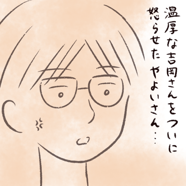 自分だけが特別にお土産をもらえると思い込んでいたやよいさん、みんなに配られたことに驚き吉岡さんに伝えたところもう1種類のお土産をもらったにもかかわらず不満を口に・・(汗)温厚な吉岡さんの怒りが爆発し「本日働かなくても結構ですのでお帰りください」と言い放たれたのでした・・。