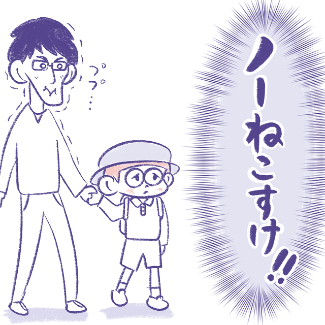 朝は父と幼稚園に向かうアキ。
