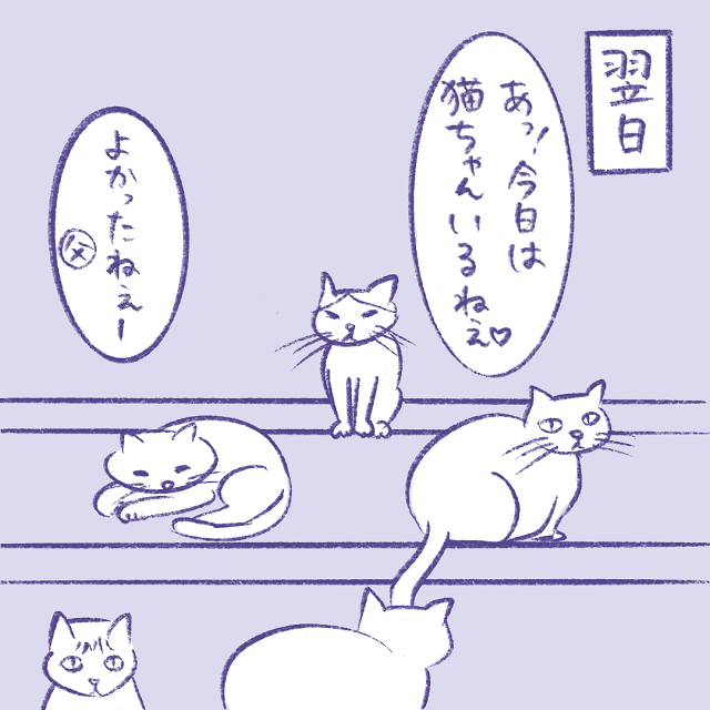 毎朝の日課が猫ちゃんを見ることになっていて、たまたま一匹もいなかった日の出来事。