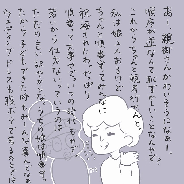 「できちゃった婚」だと決めつけられ否定するも、どーーーーしても私をできちゃった婚にしたいおばさん。
