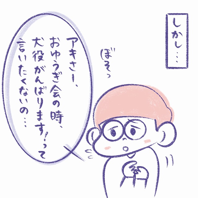 アキくんは「犬役頑張ります!」と言いたくないそうです。犬役がイヤなのかな??アキくんどうしたのー??