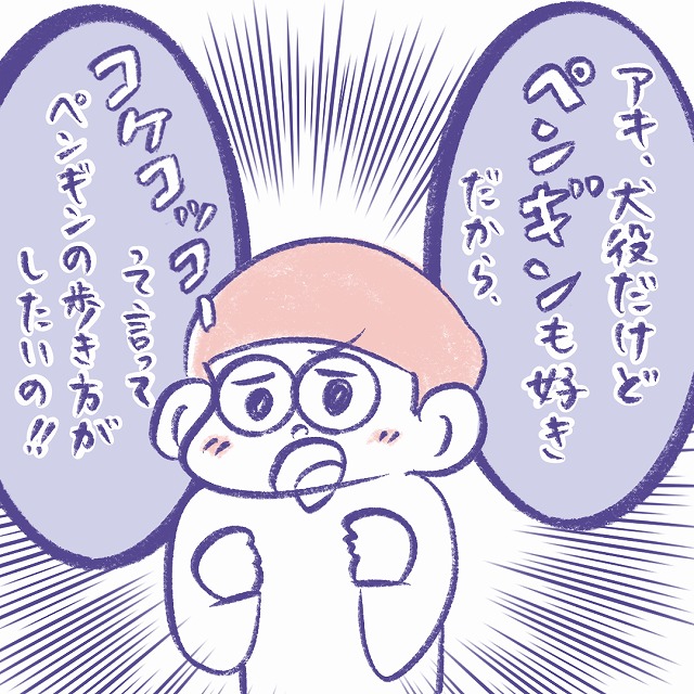 そっかー!!アキくんは「犬役」だけど「ペンギン」も好きで「コケコッコー」って言いたいんですねー!