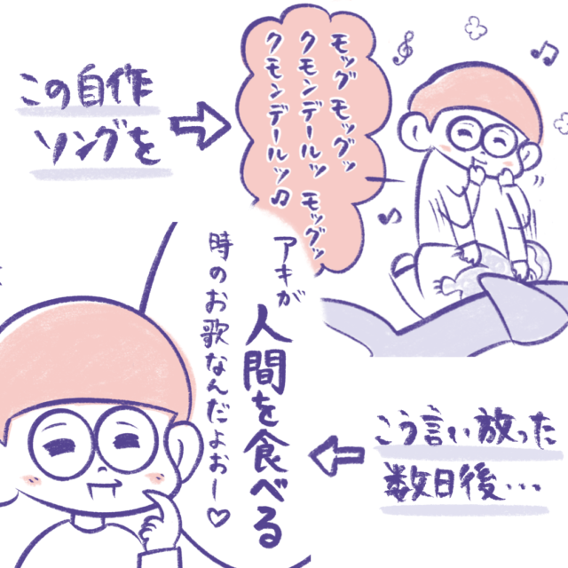 先日、人間を食べる歌を披露してくれた息子アキ。